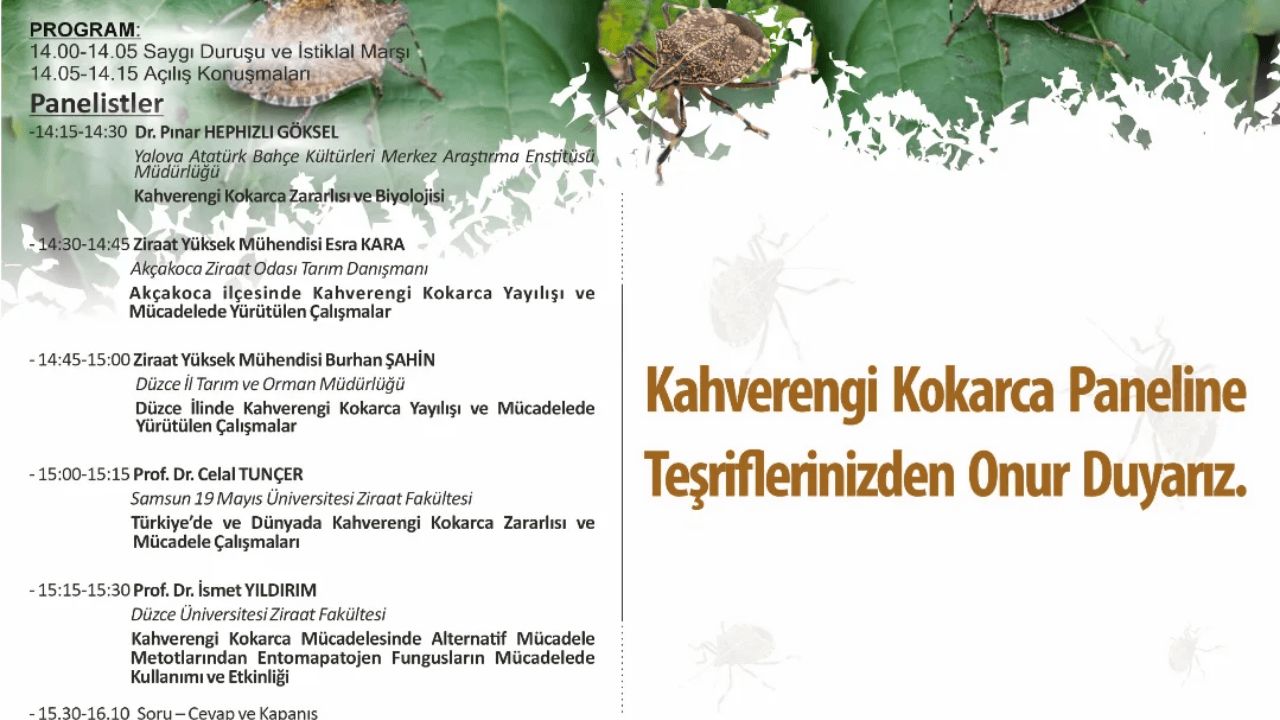 Tarım alanlarında ciddi zararlara yol açan kahverengi kokarca ile mücadele amacıyla Akçakoca’da bilgilendirme paneli düzenleniyor.