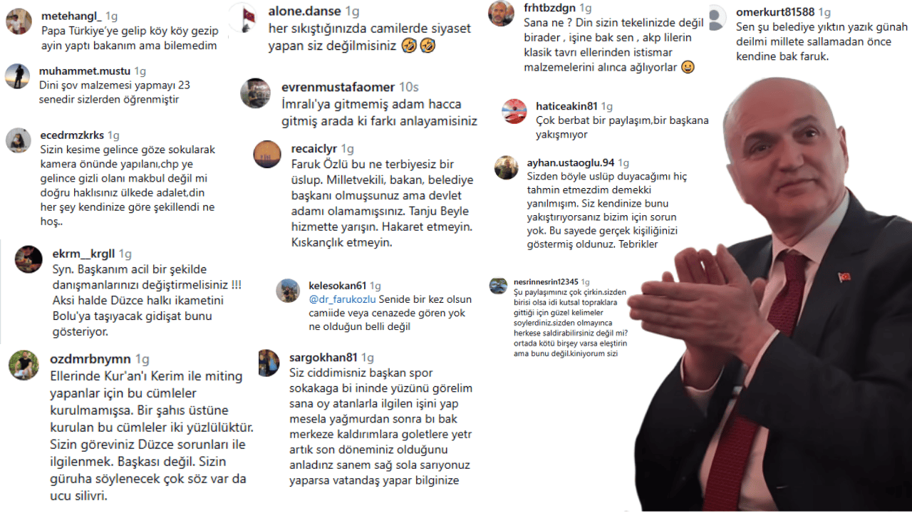Yapılan yorumların büyük bölümünde, siyasilerin ibadetler üzerinden polemik üretmemesi gerektiği vurgulanırken, Faruk Özlü’nün paylaşımının toplumsal kutuplaşmayı artırdığı görüşü öne çıktı. Vatandaşlar, Düzce Belediye Başkanı’nın sosyal medya polemiklerinden ziyade kentteki sorunlara ve belediye hizmetlerine odaklanması çağrısında bulundu.Tepkilere rağmen Faruk Özlü cephesinden henüz yeni bir açıklama yapılmazken, tartışma sosyal medyada büyüyerek devam ediyor.