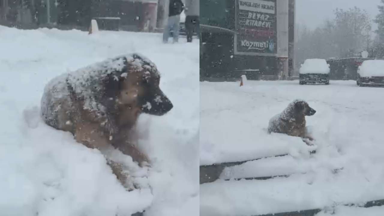 Düzce merkezde etkisini artıran yoğun kar yağışı, sokak hayvanlarının yaşadığı zorlu koşulları bir kez daha gözler önüne serdi. Şehir merkezinde bir binanın önünde, karın altında hareketsiz şekilde oturan bir sokak köpeği, soğuk ve açlıkla verdiği sessiz mücadeleyle dikkat çekti.