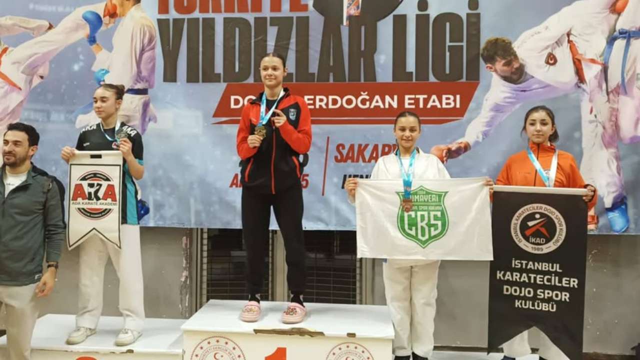 DMHA DÜZCE-Büyük çekişmeye sahne olan organizasyonda Cumayeri Belediye Spor Karate Takımı, kazandığı madalyalarla önemli bir başarıya imza attı.Müsabakalarda Cumayeri Belediye Spor adına tatamiye çıkan sporculardan; İkranur Tomakin (10 yaş +41 kg), Aybüke Aslı Tomakin (8 yaş 35 kg), Ebrar Kanber (8 yaş +35 kg), Aras Dayıoğlu (11 yaş +52 kg) ve Yiğit Ali Gülbahar (8 yaş 26 kg) altın madalya kazanarak şampiyon oldu.Asel Mira Yıldırım (8 yaş +35 kg), Sıla Işık (9 yaş 26 kg), Meryem Sare Aydıner (7 yaş 23 kg), Zeynep Tuna (8 yaş 32 kg) ve Arda Ozan Mercan (13 yaş 64 kg) ise gümüş madalyanın sahibi oldu.Turnuvada Nuri Tepe (11 yaş 52 kg), Mahmut Eymen Esentepe (9 yaş 32 kg), Muhammed Hamza Özen (9 yaş +44 kg), Ecrin Aksu (12 yaş 50 kg) ve Talha Batu Arabacı (12 yaş 56 kg) bronz madalya elde etti.Elde edilen derecelerle dikkat çeken Cumayeri Belediye Spor Karate Takımı’nın başarısında büyük pay sahibi olan Antrenör Hüsnü Şentürk başta olmak üzere, turnuvada dereceye giren tüm sporcular tebrik edildi.