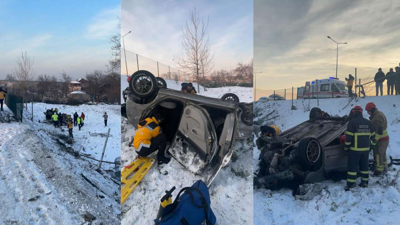 DMHA DÜZCE-Edinilen bilgilere göre kaza, saat 16.00 sıralarında otogar bağlantı yolunda yaşandı. 77 AAF 529 plakalı otomobilin sürücüsü T.A., direksiyon hâkimiyetini kaybetmesi sonucu yoldan çıkarak takla attı. Kazada sürücü T.A. ile araçta yolcu olarak bulunan A.S.K. yaralandı.İhbar üzerine olay yerine sağlık ekipleri sevk edildi. Yaralılar, olay yerindeki ilk müdahalelerinin ardından ambulansla hastaneye kaldırıldı. Kazada araçta maddi hasar meydana gelirken, olayla ilgili inceleme başlatıldı.
