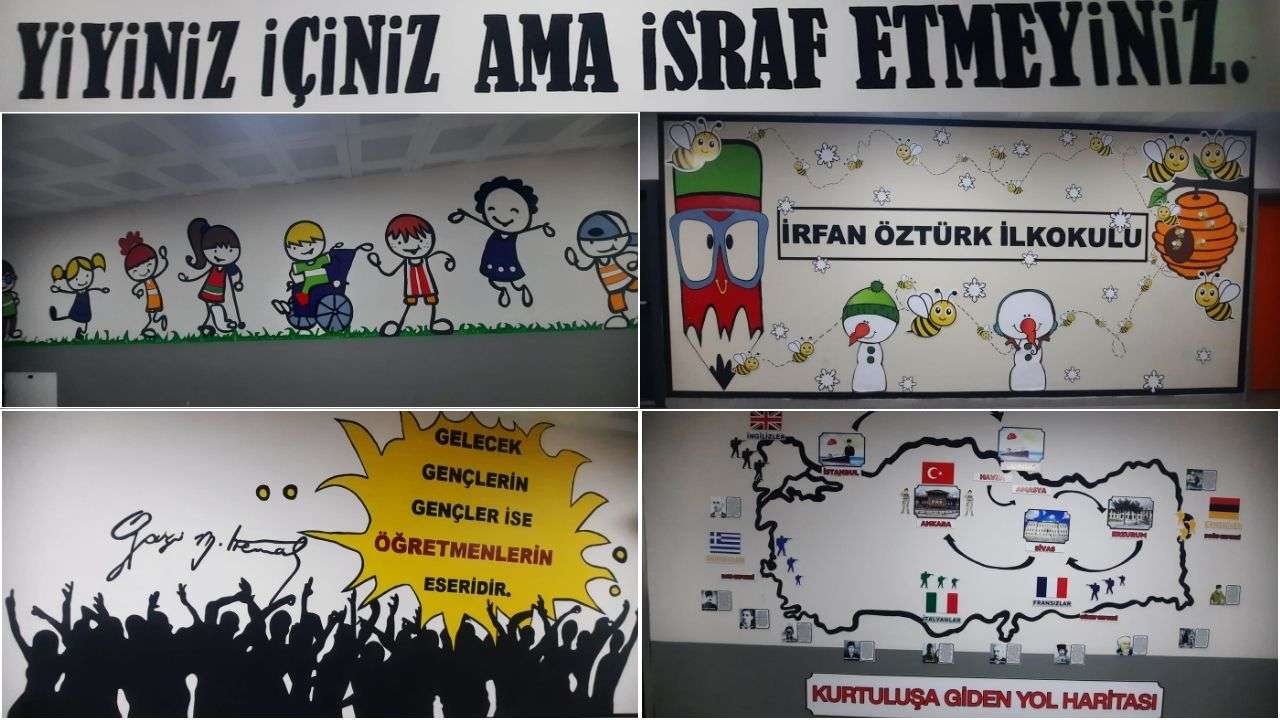 DMHA DÜZCE-Okulda hazırlanan 5 koridor ve 29 ara duvar, öğrencilerin öğrenirken keyif alabileceği ve okulda geçirdikleri zamanı daha verimli değerlendirebileceği bir eğitim ortamına dönüştürüldü. İl Millî Eğitim Müdürü Özer, koridorlarda oluşturulan tematik tasarımlar hakkında yetkililerden bilgi aldı.Ziyaret sırasında; çocukların dünyasına hitap eden renkli tasarımların yer aldığı “Afacanlar Koridoru”, Çanakkale Savaşları’nı anlatan görsellerle donatılan “Çanakkale Koridoru”, millî birlik ve beraberlik ruhunu yansıtan “15 Temmuz Koridoru”, Gazi Mustafa Kemal Atatürk’ün sözleri ve Atatürk temalı çizimlerle hazırlanan “Ata Koridoru” ile yabancı dile ilgiyi artırmayı amaçlayan “İngilizce Sokağı” çalışmaları dikkat çekti.Duvar resimlerini inceleyerek öğrencilerle sohbet eden Özer, sınıf ziyaretleri de gerçekleştirdi. Ardından öğretmenler odasında öğretmenlerle bir araya gelen İl Müdürü, okulun mevcut durumu ve yürütülen çalışmalar hakkında okul yöneticilerinden bilgi aldı. Projenin, öğrencilerin motivasyonunu artırarak eğitimi destekleyici bir ortam oluşturduğu ifade edildi.