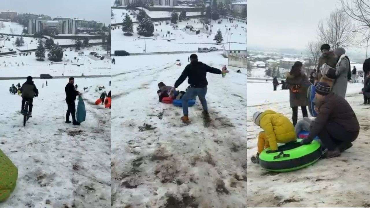 Düzce’de etkili olan kar yağışının ardından Kalıcı Konutlar bölgesi adeta kayak merkezine döndü.