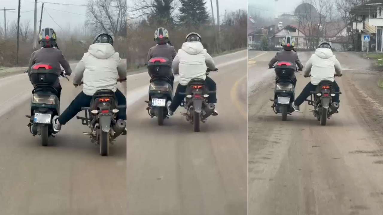 DMHA DÜZCE-Önündeki başka bir motosikletin egzozunu ayağıyla kapatmaya çalışan sürücü, hem kendi canını hem de trafikteki diğer sürücüleri riske attı.Olay anları, arkadan gelen bir araçta bulunan vatandaşlar tarafından saniye saniye cep telefonu kamerasıyla kaydedildi. Görüntülerde, motosiklet sürücüsünün trafikte ilerlerken dengesini bozabilecek şekilde egzoza ayağıyla müdahale etmeye çalıştığı, bu tehlikeli davranışı ise defalarca tekrarladığı görülüyor.Trafik akışının yoğun olduğu bir noktada gerçekleşen olay nedeniyle araçların yavaşladığı, kısa sürede araç kuyruğu oluştuğu öğrenildi. Yaşananlar, diğer sürücüler arasında endişeye yol açtı.Olayı kayda alan sürücüler, “Bu motosikletlerin yaptığı tehlikeli hareketler yüzünden uzun süre ilerleyemedik. Arkada ciddi bir araç kuyruğu oluştu. Yetkililerin bu tür sorumsuz davranışlara karşı müdahale etmesini istiyoruz. Olası bir kazada can ya da mal kaybı yaşanmasından endişe ediyoruz” ifadelerini kullandı.Görüntülerin sosyal medyada da paylaşılmasının ardından, sürücünün davranışı trafik güvenliği açısından tepki topladı.