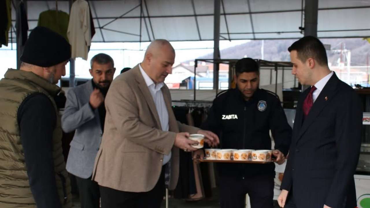 DMHA DÜZCE-Sabahın erken saatlerinde tezgâhlarını açan pazar esnafına sıcak çorba ikramında bulunan Başkan Yıldız, esnafla gönül dolusu sohbet etti.Ziyaret sırasında esnafın talep ve önerilerini dinleyen Başkan Yıldız, emekçi pazar esnafının her zaman yanında olduklarını vurguladı. Soğuk havada yapılan çorba ikramı, hem esnafın hem de vatandaşların takdirini topladı.Başkan Yıldız, “Sabahın seherinde alın teriyle tezgâhını açan esnaf kardeşlerimizin içini bir kase çorbayla ısıtmak, onlarla samimiyeti paylaşmak bizim için büyük bir mutluluk. Rabbim tüm esnafımıza helalinden bol ve bereketli kazançlar nasip etsin. Biz büyük bir aileyiz” ifadelerini kullandı.