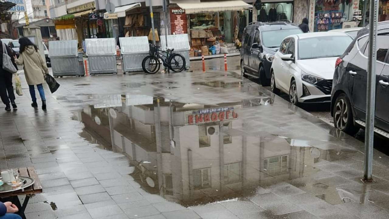 Düzce’nin Pakekizceli İş Merkezi önünde kaldırımda biriken su, hem esnafı hem de bölgedeki vatandaşları mağdur ediyor.