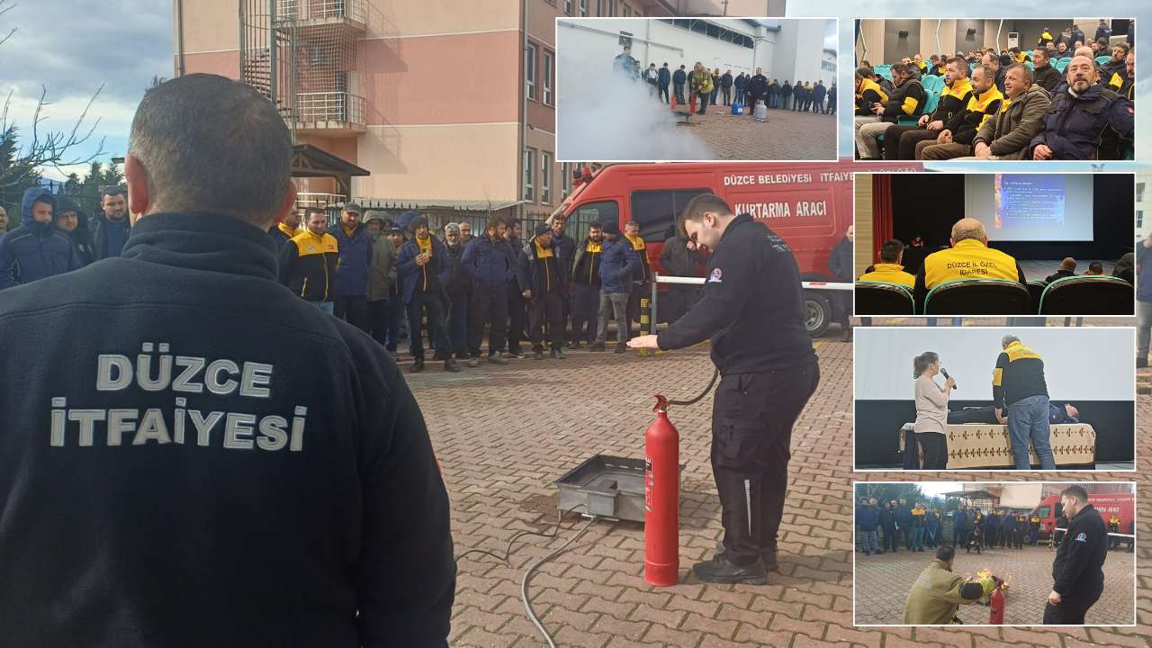 Düzce İl Özel İdaresi bünyesinde görev yapan kamu personeline yönelik iş sağlığı ve güvenliği eğitimi düzenlendi. Eğitim programı, yangın tatbikatıyla sona erdi.