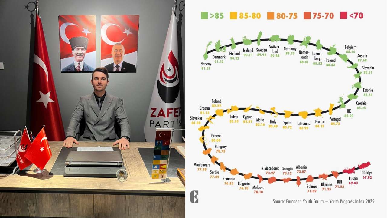 DMHA DÜZCE-Zafer Partisi Düzce İl Gençlik Kolları”European Youth Forum tarafından yayımlanan 2025 Gençlik İlerleme Endeksi’ne göre Türkiye, 67.82 puanla Avrupa’da gençlerin yaşam kalitesi sıralamasında son sırada yer aldı. Norveç, Danimarka ve Finlandiya gibi ülkeler 90 puanın üzerine çıkarken, Türkiye’nin listenin en altında kalması gençliğin içinde bulunduğu tabloyu bir kez daha ortaya koydu.Konuyla ilgili açıklama yapan Zafer Partisi Düzce İl Gençlik Kolları Başkanı Emin Serhan Tekin, Türkiye’de genç olmanın her geçen gün daha da zorlaştığını belirtti.Tekin, “Bugün Avrupa’nın birçok ülkesinde gençler kaliteli eğitime, güçlü ekonomik fırsatlara ve özgür bir sosyal yaşama erişebilirken; Türkiye’de gençler barınma krizi, işsizlik ve gelecek kaygısıyla mücadele etmektedir. 67.82 puanla Avrupa sonuncusu olmak Türk gençliğine reva görülemez” dedi.Gençlerin potansiyelinin yüksek olduğunu vurgulayan Tekin, mevcut politikaların gençliğin önünü tıkadığını ifade ederek şunları söyledi:“Plansız göç politikaları, üretimden uzak ekonomik model ve liyakatsizlik gençlerimizin geleceğini karartmaktadır. Üniversite mezunları iş bulamıyor, beyin göçü artıyor. Gençler kendi ülkelerinde gelecek kurma umudunu kaybediyor. Bu tablo kader değildir.”Zafer Partisi Gençlik Kolları olarak çözüm önerilerini de sıralayan Tekin, nitelikli ve erişilebilir eğitim, genç işsizliğini azaltacak milli üretim hamlesi, liyakat esaslı kamu yönetimi ve gençlerin karar mekanizmalarında daha fazla söz sahibi olması gerektiğini belirtti.Emin Serhan Tekin açıklamasını şu sözlerle tamamladı:“Türkiye genç bir nüfusa sahip ve bu büyük bir avantajdır. Ancak doğru politikalar uygulanmadığı sürece bu avantaj kayba dönüşür. Türk gençliği umutsuz değildir, sahipsiz değildir. Gençlerimizin hak ettiği refah ve gelecek için mücadelemizi kararlılıkla sürdüreceğiz.” ifadelerini kullandı.