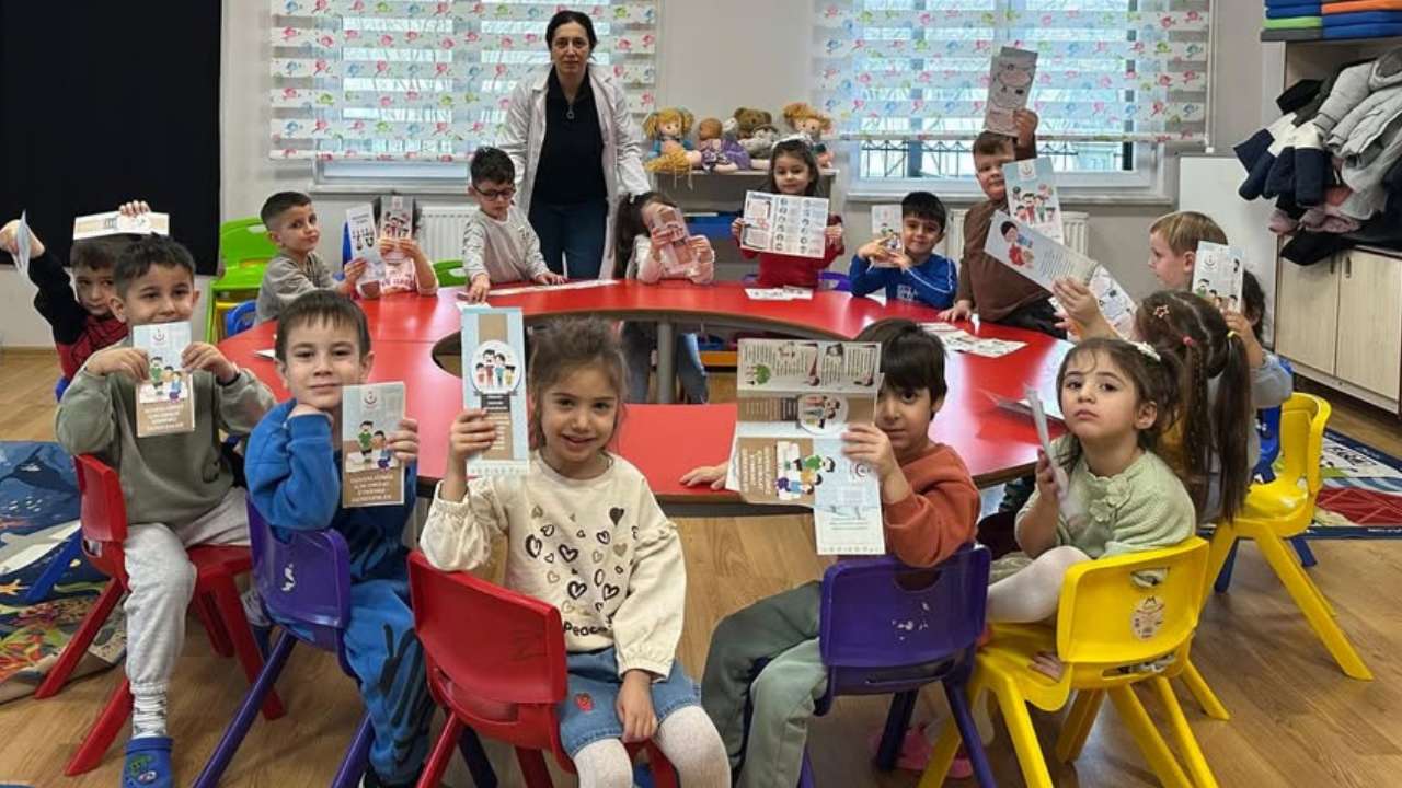 DMHA DÜZCE-Bu kapsamda, Kaynaşlı İlçe Devlet Hastanesi ile Kaynaşlı Toplum Sağlığı Merkezi ekipleri tarafından Abdüssamed Dik Anaokulu öğrencilerine yönelik eğitim programı düzenlendi.Gerçekleştirilen eğitimlerde minik öğrencilere; bulaşıcı hastalıklar, sağlıklı beslenme, çocuk güvenliği, kişisel hijyen ve korunma yöntemleri konularında yaş gruplarına uygun, anlaşılır bilgiler aktarıldı. Eğitimler sırasında çocukların aktif katılımı sağlanarak, günlük hayatta uygulayabilecekleri doğru sağlık alışkanlıkları üzerinde duruldu.Yetkililer, çocukların sağlıklı, bilinçli ve güvenli bireyler olarak yetişmelerini amaçlayan okul sağlığı çalışmalarının ilçedeki eğitim kurumlarında belirli aralıklarla devam edeceğini belirtti.