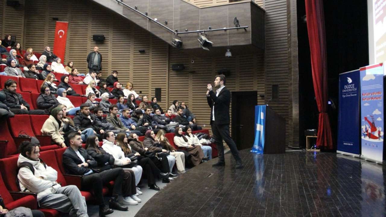 Düzce İŞKUR ile Düzce Üniversitesi Kariyer Geliştirme ve Mezun İzleme Uygulama Araştırma Merkezi iş birliğinde düzenlenen “Kariyer Gelişim Eğitim Serisi”nin ilk programı gerçekleştirildi. Serinin açılış eğitimi olan “Etkili CV Hazırlama Teknikleri”, öğrencilerden yoğun ilgi gördü.